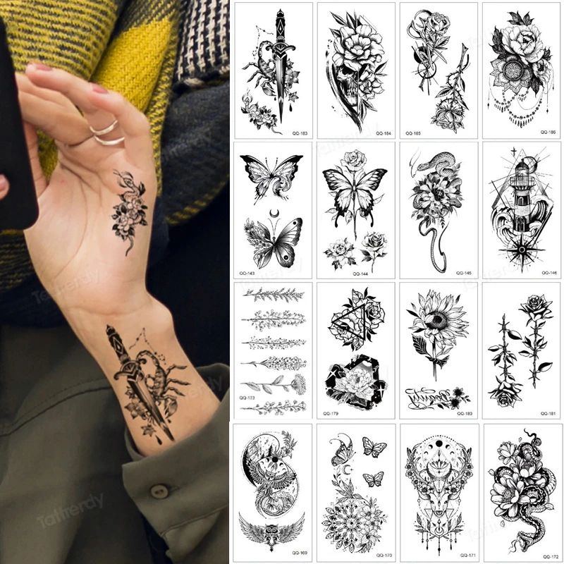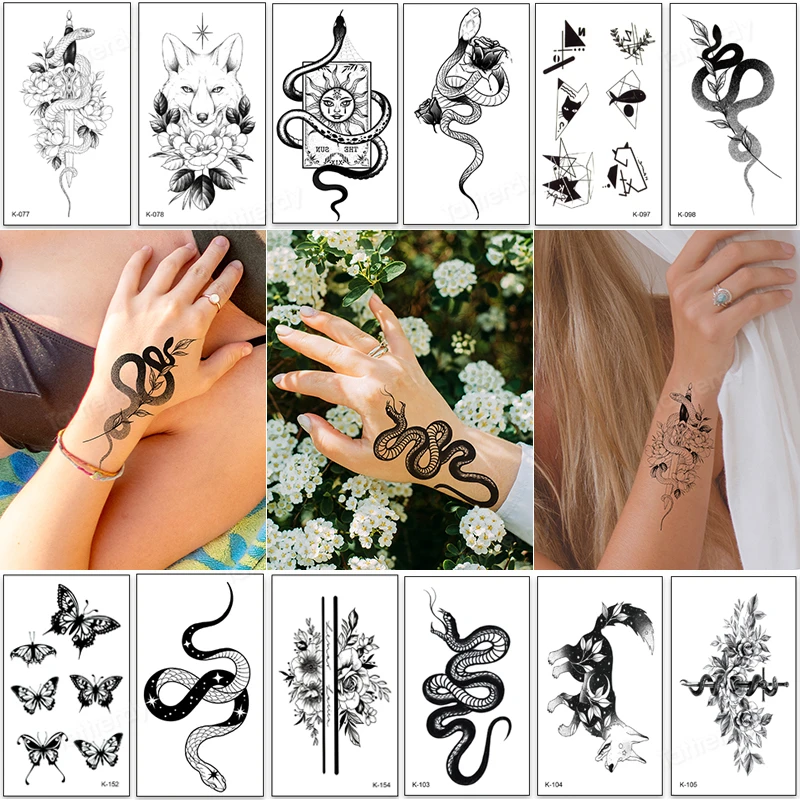 Small Tattoo Sticker Black Flower Butterfly Snake Anime Temporary Tattoo On Hand Finger Ankle Wrist Tattoo Fake For Women Kids Temporary Tattoos Aliexpress