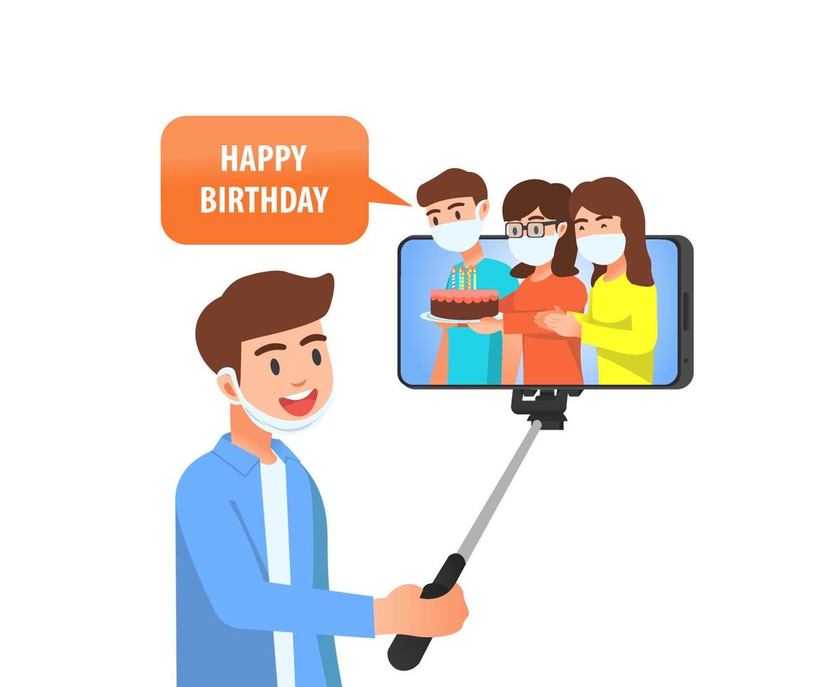 Teenage Boy Celebrates His Birthday Via Video Call 7941947 Vector Art At Vecteezy