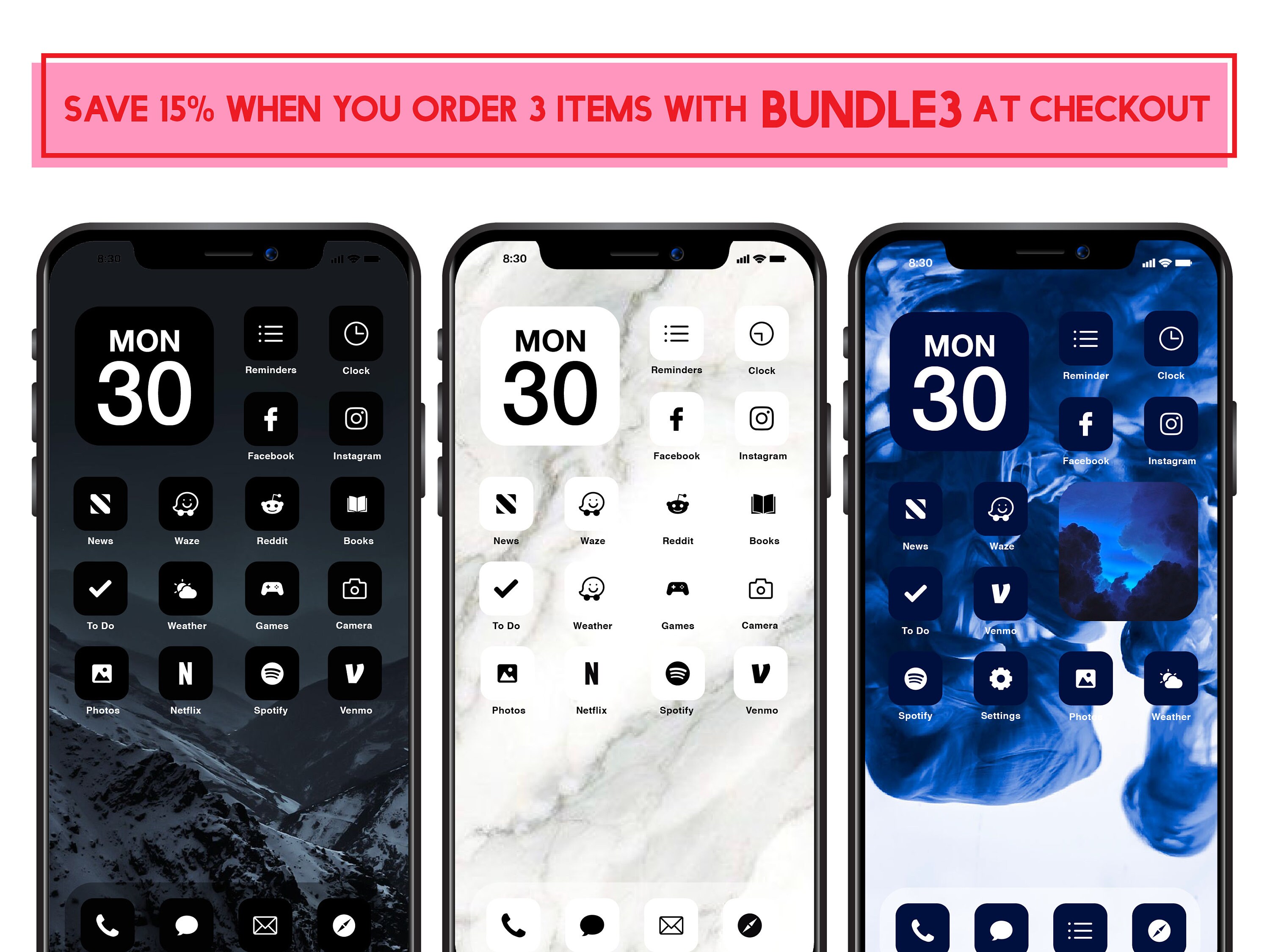 Ios Red App Icons 230 Red And Black Minimal Ios 14 Modern Etsy
